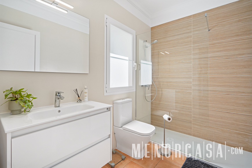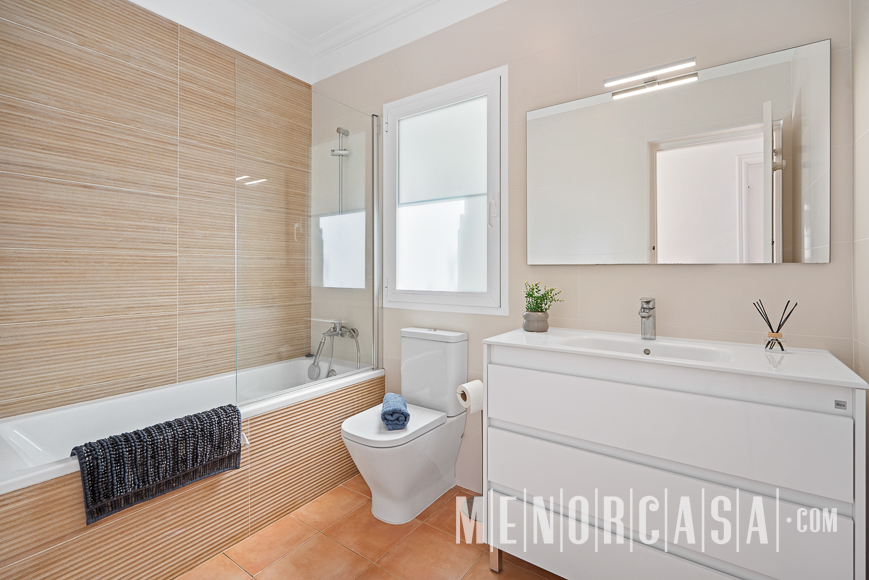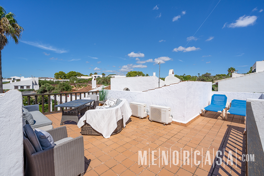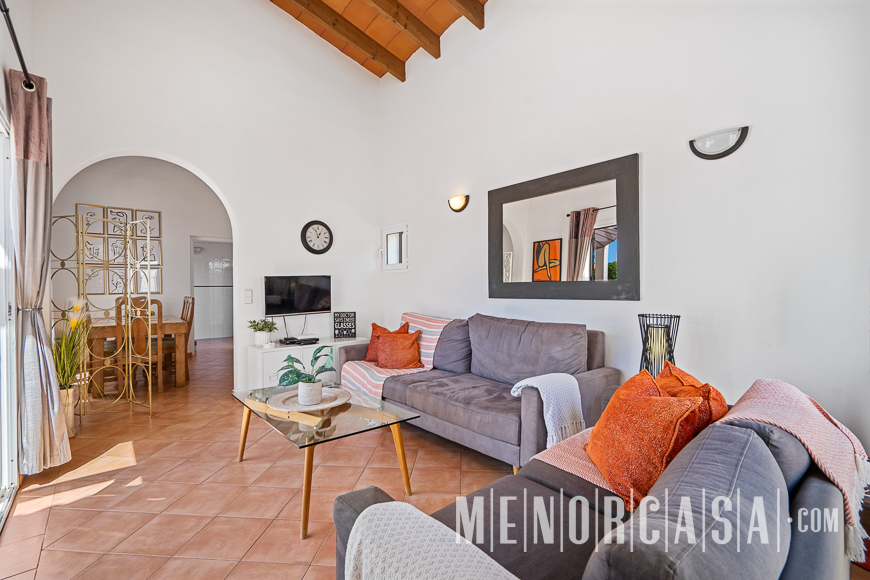 Located just a few minutes away from the popular family beach of Binibeca, this single storey, detached villa offers a built area of 169mts2, stands on a plot of 920mts2 and does have a tourist licence for those wishing to officially let. With its ‘L’ shape design, this light and sunny property has a south facing aspect and offers an open plan lounge and dining room, newly refurbished and independent kitchen and 3 double bedrooms. The kitchen leads out to a rear terrace used as a utility and drying area with the living area and all three bedrooms leading out to the swimming pool and surrounding terraces. All bedrooms have fitted wardrobes and air conditioning/heating. There are 2 modern bathrooms, 1 of which is en suite to the main bedroom. The roof terrace with sea views is used as a relaxing chill out lounge and from this level there are good sea views. Other features of this immaculate listing include aluminium double glazed windows and off road parking. This delightful property is sold furnished and equipped. Binibeca is a beautiful white sandy beach on the South coast of Menorca with local amenities including a variety of seasonal bars, restaurants and shops. Other nearby areas include Punta Prima and Alcaufar and with the nearest main town being that of San Luis. Lovely villa in a very sought after area and with huge rental potential.