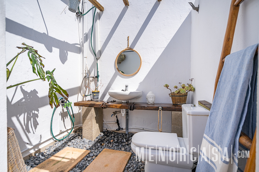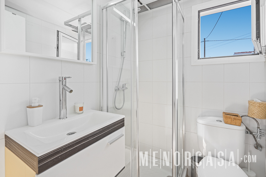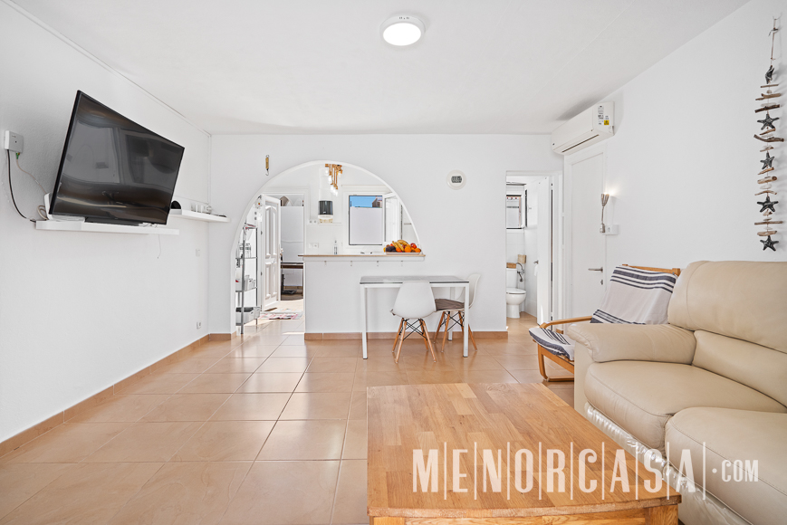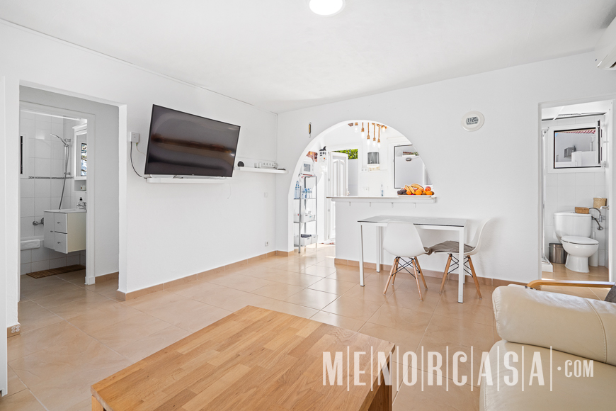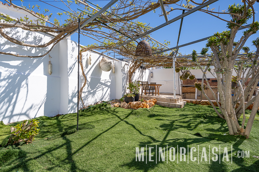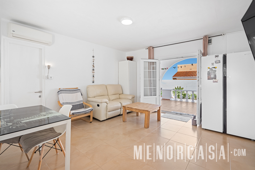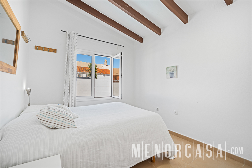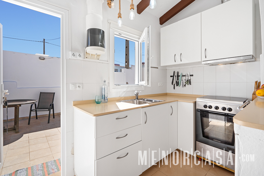 With beautiful sea views reaching as far as Mallorca, this immaculate and pretty detached villa in Calan Porter is located in a very quiet area offering a built area of 90mts2 and standing on a plot of 450mts2. Built on one level this lovely property is ideal for all year living or as a lock up and go having a very low maintenance garden consisting mainly of terraces that surround the villa and provide plenty of areas for either enjoying the sun or sitting in the shade and relaxing. There is also an exterior kitchen and eating area which are very much a part of the Mediterranean lifestyle. The accommodation offered comprises of 2 double bedrooms, both with fitted wardrobes and air conditioning, a shower room and a bathroom. The living area is open plan with the kitchen and leads out to a spacious covered terrace overlooking the swimming pool and having sea views. The living area also has air conditioning. There is a third single bedroom but this is currently used as a store room. The garden surrounds the entire property and has been very nicely done having an exterior kitchen with BBQ and bathroom. There are plenty of areas to escape the sun and relax in the shade and plenty of terrace area around the pool for sunbathing. Exterior stairs lead up to a fantastic roof terrace with superb sea views. This property is sold semi furnished and equipped. Calan Porter is a very popular coastal town on the South Coast of Menorca with a lovely sandy beach and a variety of bars, shops and restaurants. The nearest main town is that of San Clemente with Mahon, the capital of Menorca being just a 10 minute drive away.