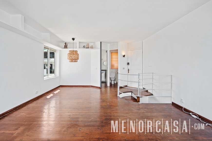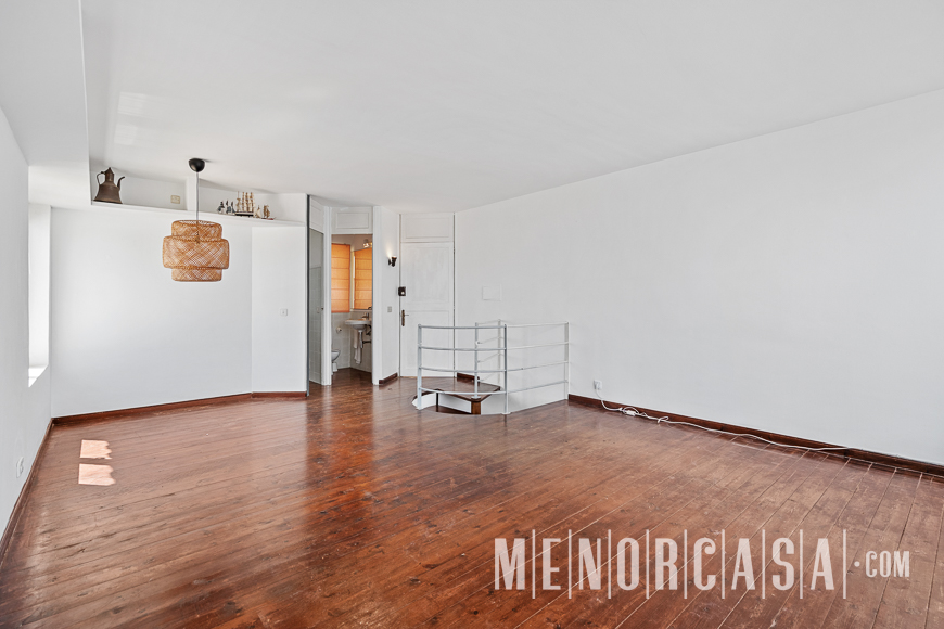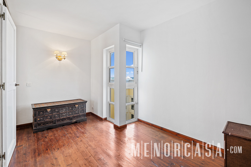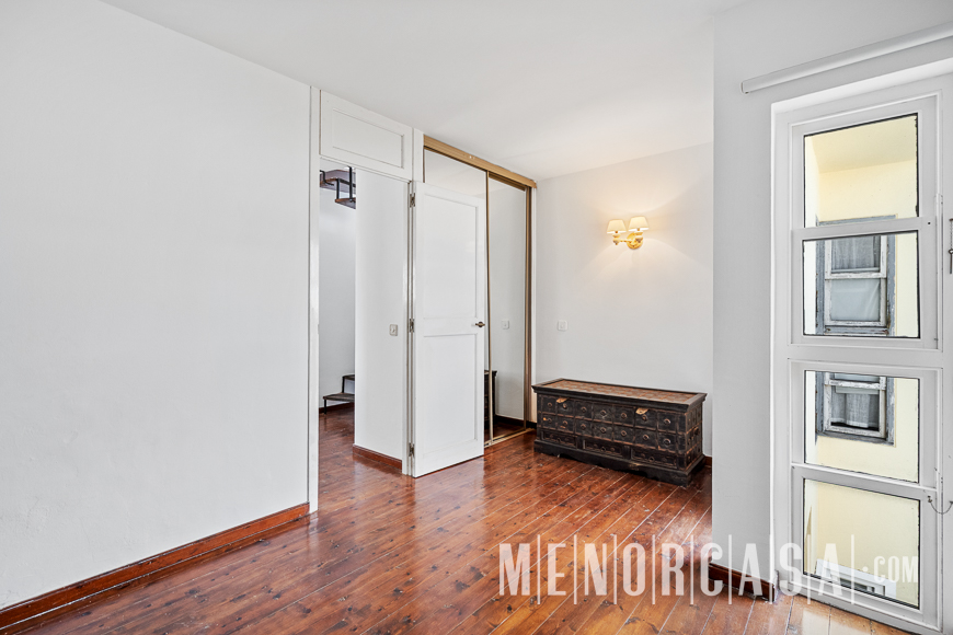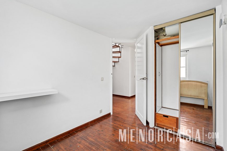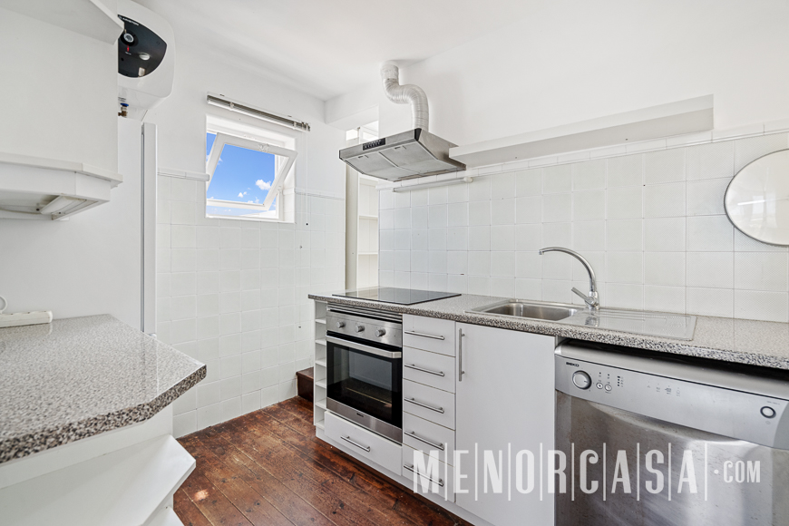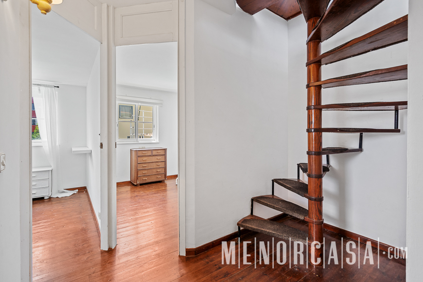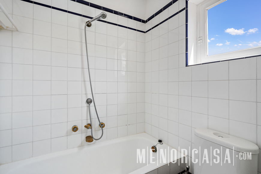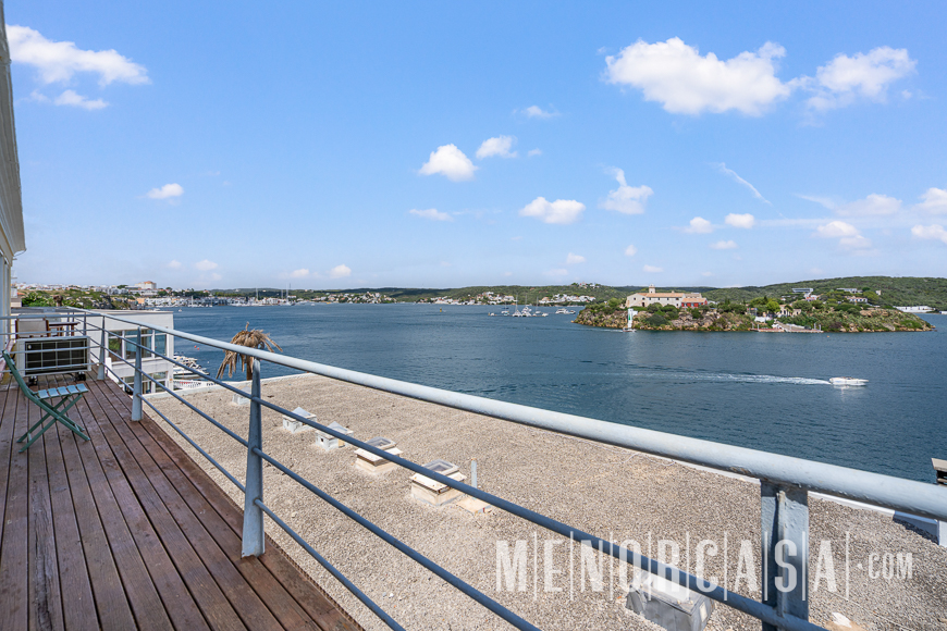 With incredible front line sea views, this duplex style property forms part of a small complex on the outskirts of Es Castell and has the use of a shared swimming pool and gardens. With a built area of approximately mts2, the property is entered via an exterior spiral stairway that leads directly in the open plan lounge and dining room. This leads out to a large terrace that runs the entire width of this property and literally has views along the whole length of Mahon Port. On this level there is also an independent kitchen, a utility room and a cloakroom. A spiral stairway leads down from the lounge to the three bedrooms and a bathroom. The floors throughout are parquet. Es Castell is a popular town located just a few minutes drive away from the other main town of San Luis and Mahon, the capital of Menorca. Offering all main services, most of which are within walking distance of this duplex, Es Castell is popular for both all year living or as a holiday ‘lock up and go’.